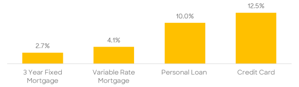 As you can see from the chart above, there are very different borrowing costs dependent on debt type. Credit card debt is typically the most expensive debt and can be as high as 10-15%, whereas you can get a mortgage for as low as 2.7%. It is essential to note that mortgage rates are at historical lows and might rise in the future, so don’t expect to bank on a 2.7% mortgage forever.